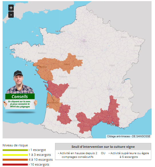 Une fois encore, les relevés des piégeurs de l ’OBSERVATOIRE DE SANGOSSE montrent que toutes les zones ont dépassé les seuils d’intervention et présentent un niveau de risque escargots élevé.