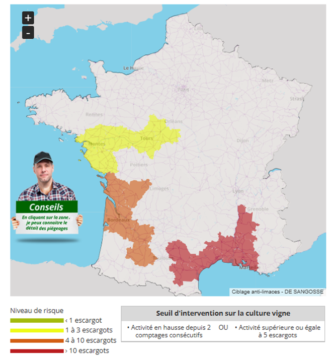 En effet, cette semaine encore, les relevés des piégeurs de l ’OBSERVATOIRE DE SANGOSSE indiquent une augmentation des populations d’escargots dans l’ensemble des zones viticoles suivies.