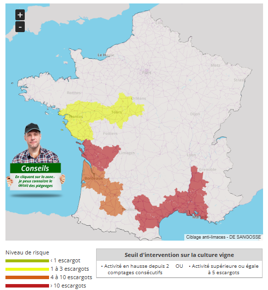 Les escargots commencent à coloniser les ceps. Sur certaines parcelles, notamment dans le Sud et le Gers, le phénomène est déjà visible.